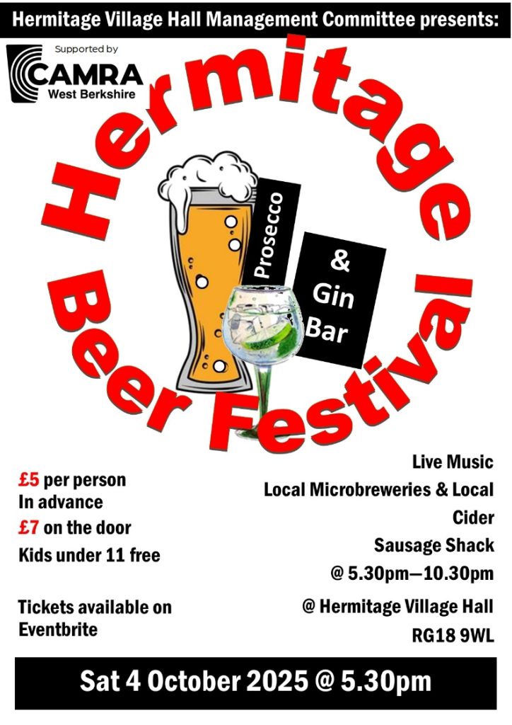 The third Beer Festival at Hermitage Village Hall presented by Hermitage Village Hall Management Committee. This year’s event is supported by West Berkshire CAMRA.